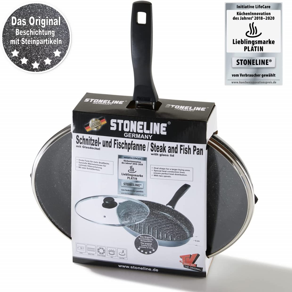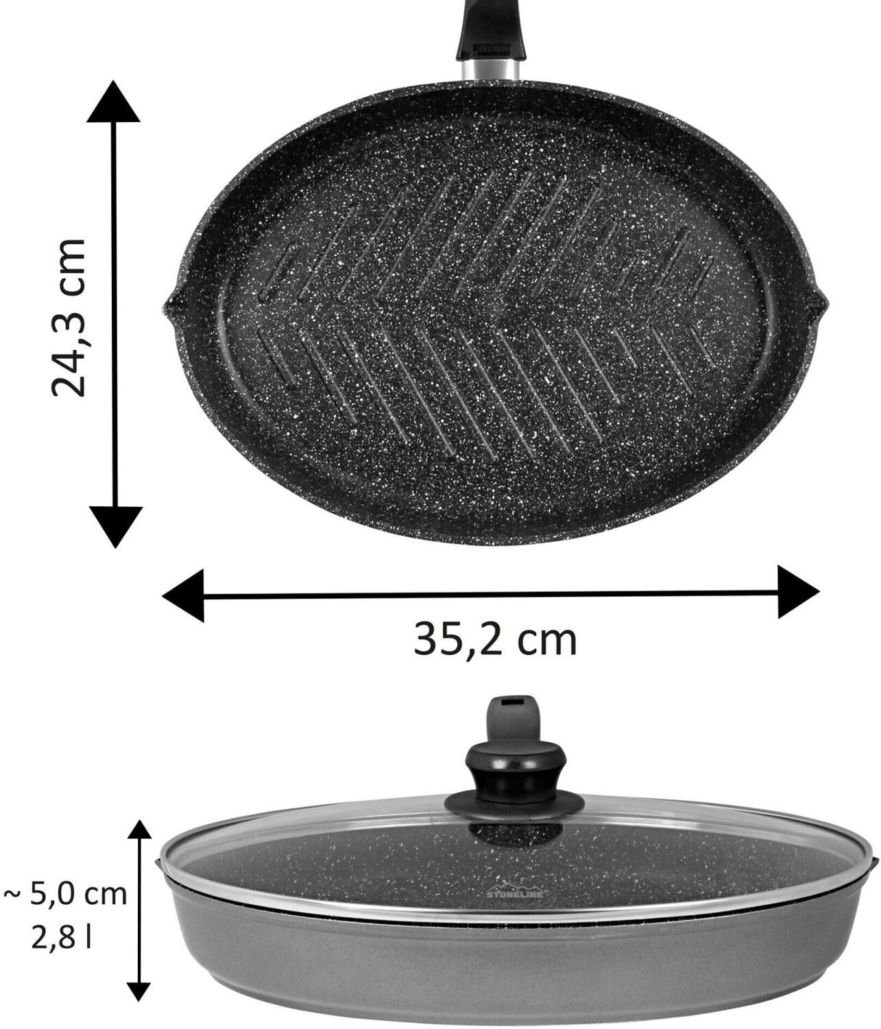 Chảo Stoneline XXL Fish and Schnitzel nắp kính,
