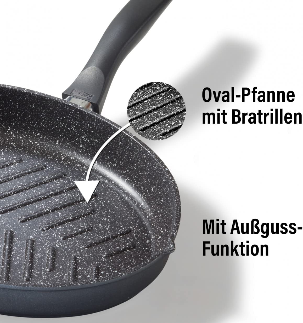 Chảo rán cá Oval được trang bị lớp phủ Stoneline chất lượng cao được phát triển đặc biệt, có đặc tính chống dính tối ưu với bề mặt chắc chắn và chống trầy xước. Lớp phủ không chứa PFOA với các hạt đá thật cho phép nấu nướng và chiên rán tốt cho sức khỏe, không cần dầu mỡ như trên đá tự nhiên, ngăn ngừa cháy khét thực phẩm và thực phẩm nướng, đồng thời dễ dàng làm sạch.