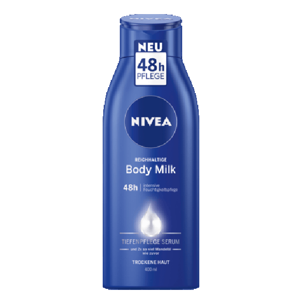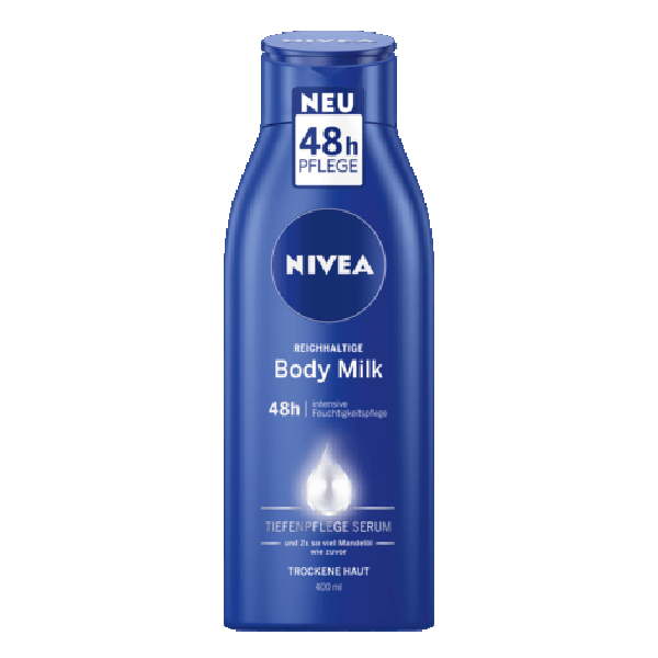 "Body Milk là thích hợp cho việc sử dụng hàng ngày. NIVEA giàu dưỡng ẩm dùng trên toàn cơ thể. Với việc sử dụng thường xuyên, da trở nên mềm mại tới 24 giờ.